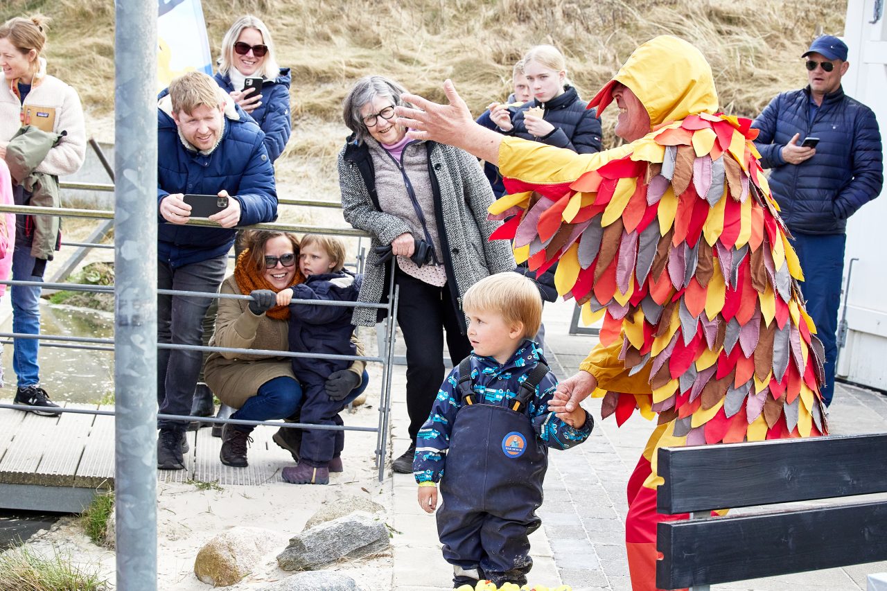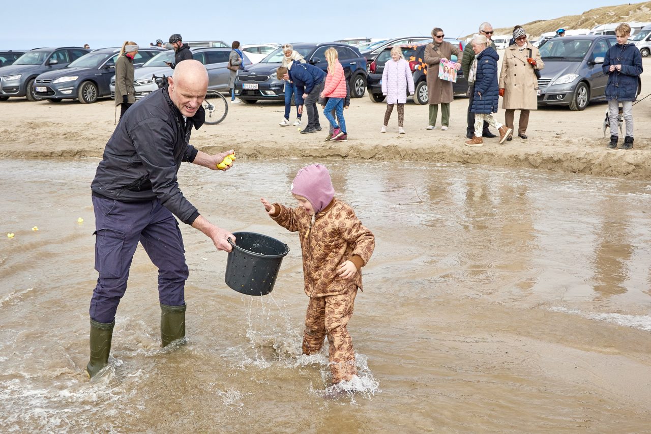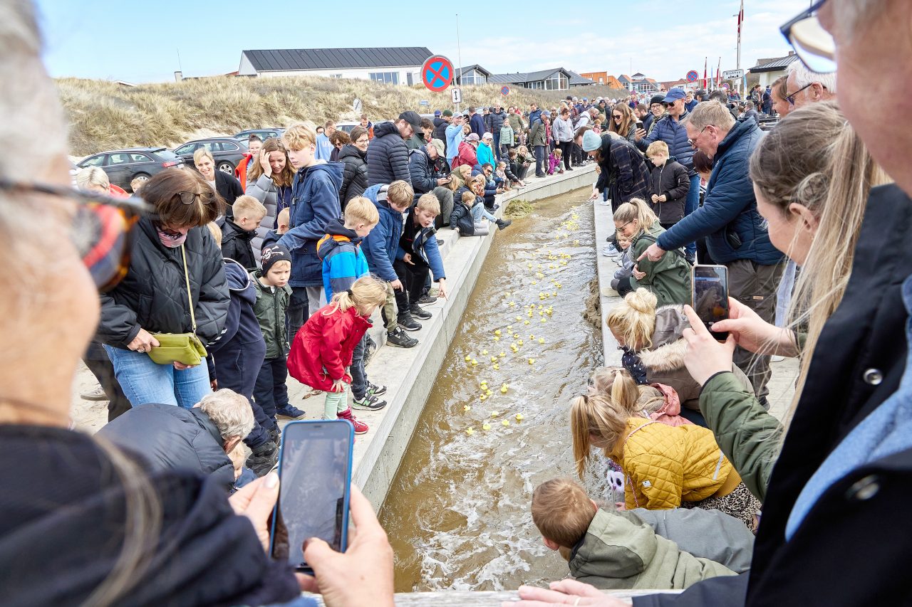 Anderæset er et helt simpelt set-up. Små fine plastikænder bliver søsat fra broen over bækken ved Fiskernes Hus på Blokhus strand, og med fuld fart ovenpå vandet begiver de sig mod Vesterhavet.