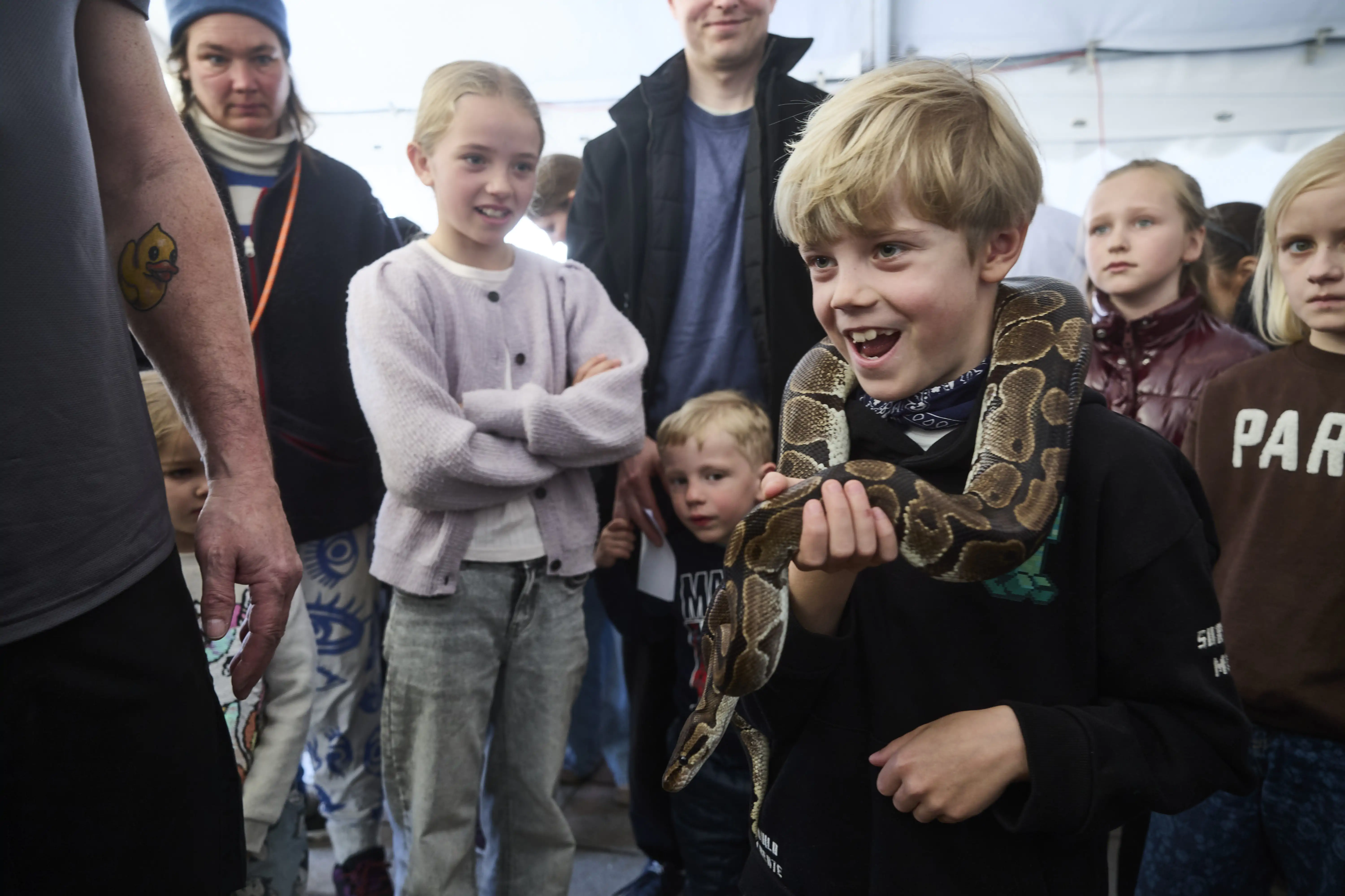 Omkring 600 var stimlet sammen for at hilse på slangerne, som slangetæmmer Peter Mark havde taget med til Blokhus. Showet var så eftertragtet, at hvad der i første omgang var tiltænkt til at være et show, blev pludselig forvandlet til to, for at alle fik en chance for både at se og røre dyrene.