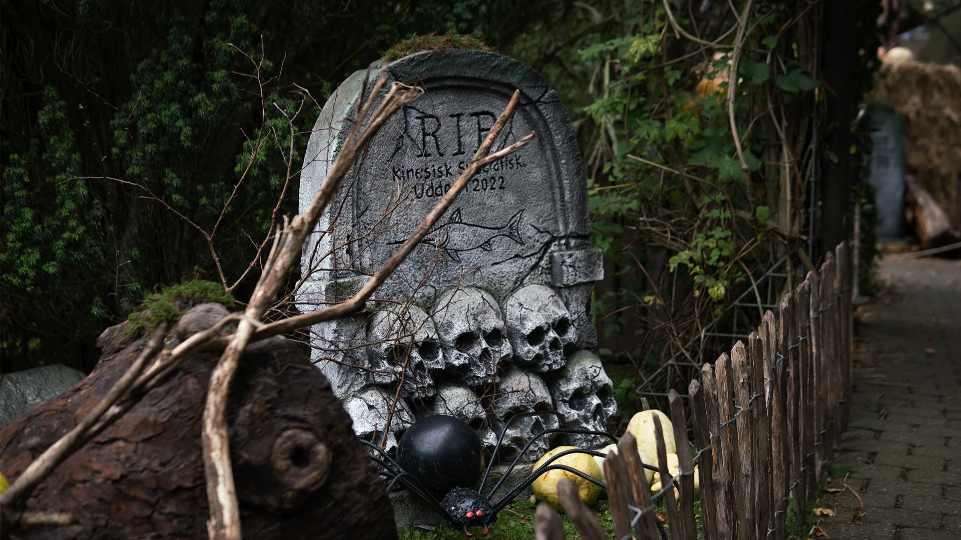 Haven bugner af kreative dekorationer, farverige blomsteropsætninger og uhyggelige fugleskærmsler, der sammen med et GIGANTISK hav af græskar danner rammen for ægte Halloween-stemning i hver en krog.