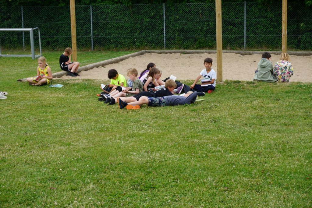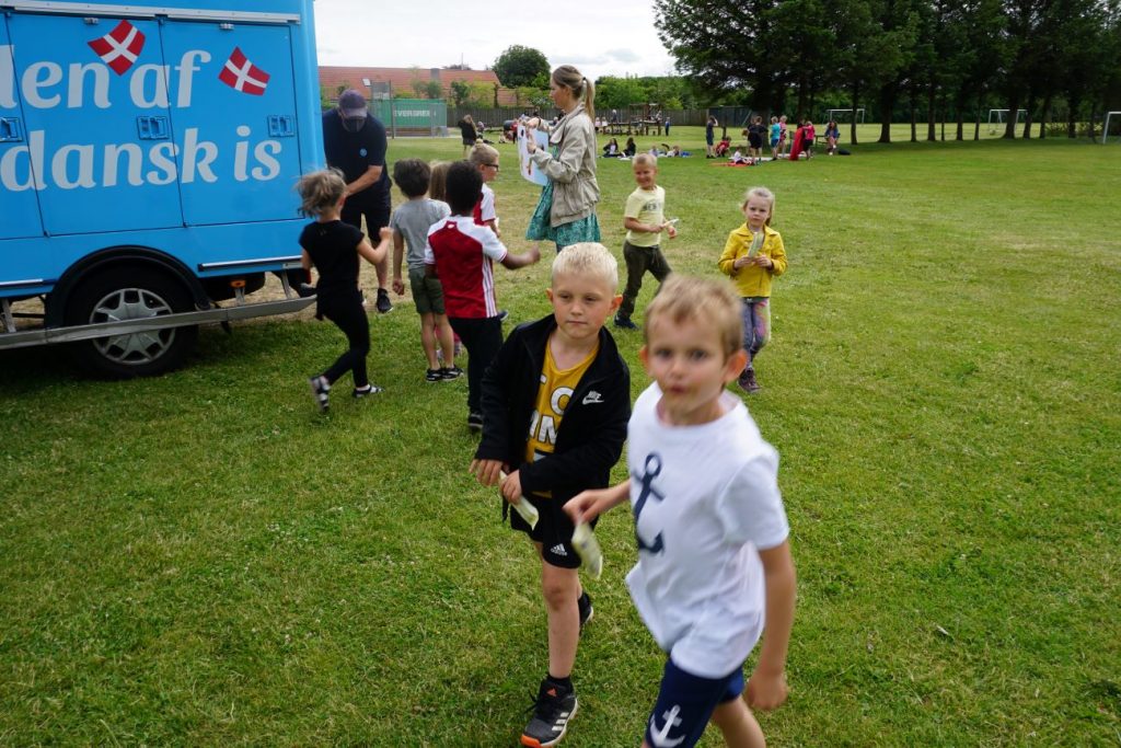 Fredag kunne Pandrup Skoles indskoling med 0. til 3. klasserne samt før 0. klasserne for første gang samles, da de forskellige klasser skulle afslutte deres læseforløb, og det skete selvfølgelig uden for – med en meget populær overraskelse, da Hjem Is bilen kom forbi med en is til alle børnene.