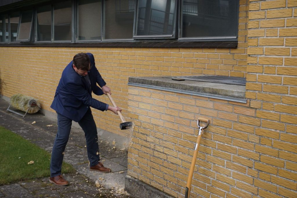 Med velplacerede slag fra borgmester Mogens Chr. Gade, bestyrelsesformand Inger Kristensen og centerchef John Nielsen blev der mere end symbolsk slået hul på den store modernisering og udvidelse af Jetsmark Idrætscenter, som skal gennemføres i 3 etaper det kommende halvandet år.